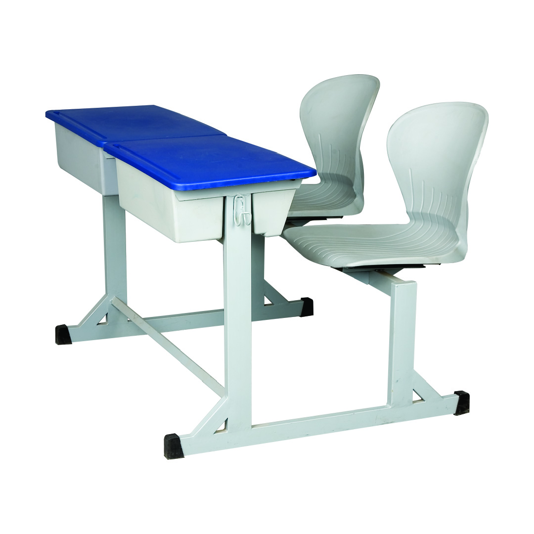 Saab S-442 Joint Peacock Bench Desk with Plastic Top & Boxes 2-Seater. This joint study table comes with steel legs and wide open boxes for students to keep more items and stationary easily to get extra working space. Manufactured with pure material. Strong, durable and long lasting.